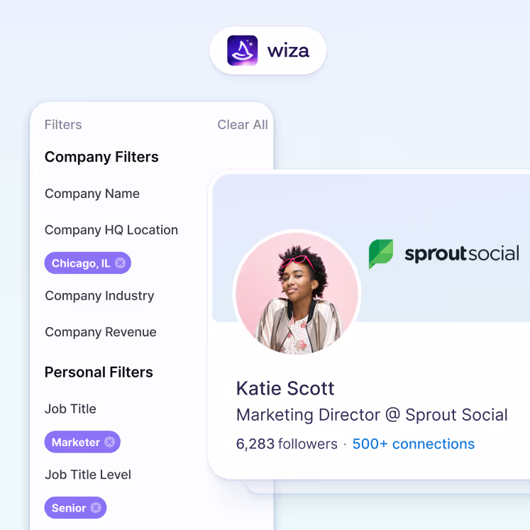 With Wiza Prospect, you'll have access to our exclusive database with 850m+ B2B professionals, making pipeline generation a breeze.
