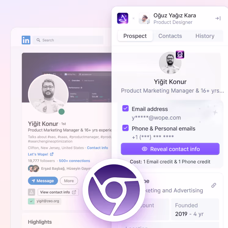 With Wiza’s Chrome extension, reveal email addresses and phone numbers on Professional Social Networks profiles, eliminating hours wasted on manual searching and guesswork.